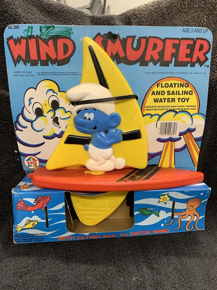 1. Vintage 1982 Smurfs Wind Smurfer Toy