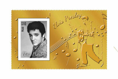 Elvis Presley’s birth was celebrated with a gold foil stamp from Palau in 2013 to mark his 70th birthday. A large gold foil stamp with a portrait of Elvis Presley and a gold border with musical notes and other decorations measures around 9.5 x 5.5 cm. In 2013, the gold foil stamp was made available.