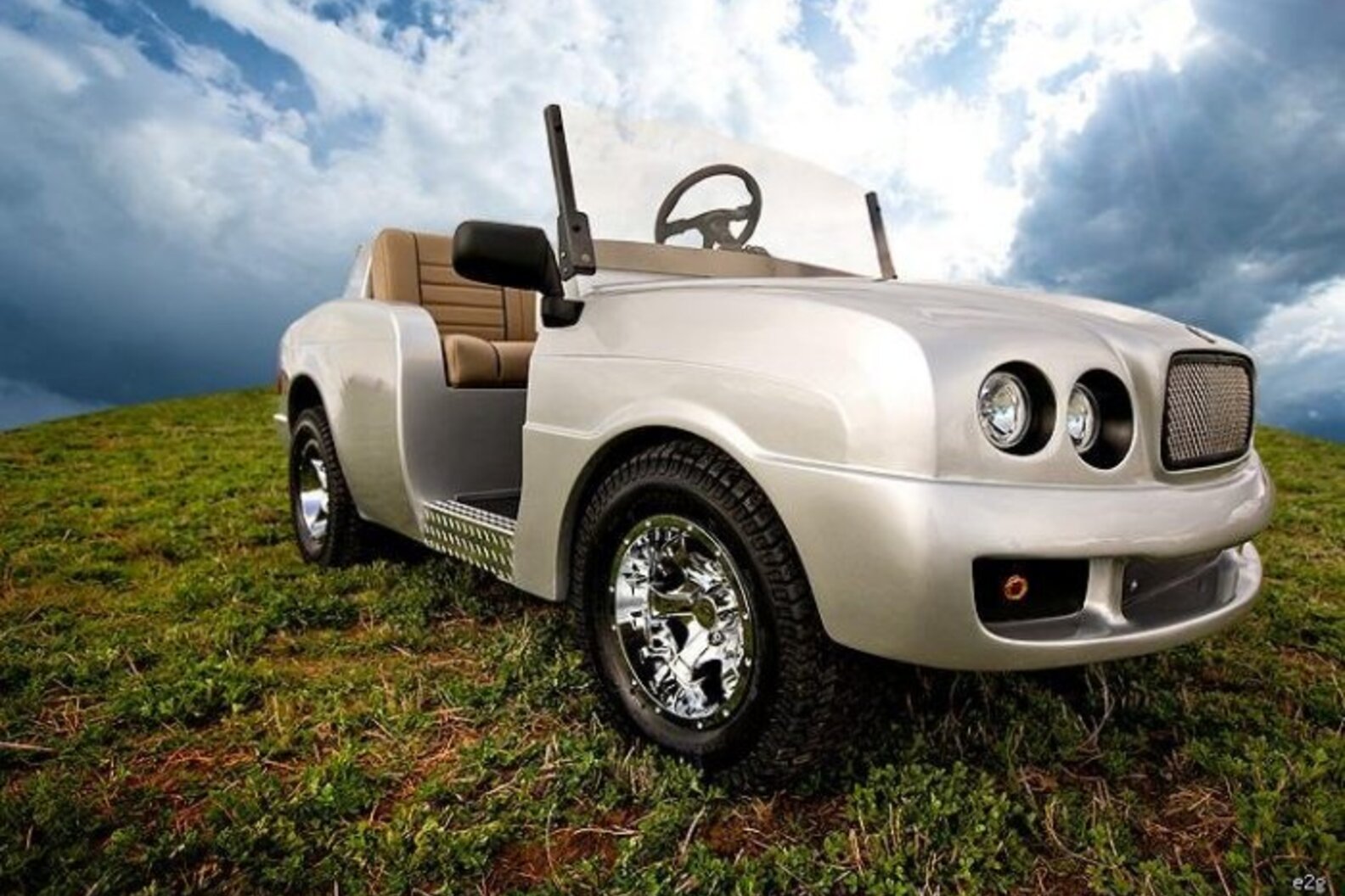 This six-seater luxury golf cart crafted by Pennwick was once a celebrity favorite. It is modeled after the iconic Bentley and is equipped with twin headlights and a matrix grill that resemble the classic British-style luxury automobile.